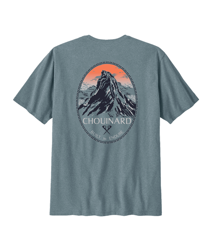Patagonia added gradient-printed color to this classic graphic from the early days. Check it out on our Chouinard Crest Pocket Responsibili-Tee® that's built with recycled fabrics. By utilizing fabric scraps and recycled bottles, we reduce our reliance on virgin raw materials. Made in a Fair Trade Certified™ factory.