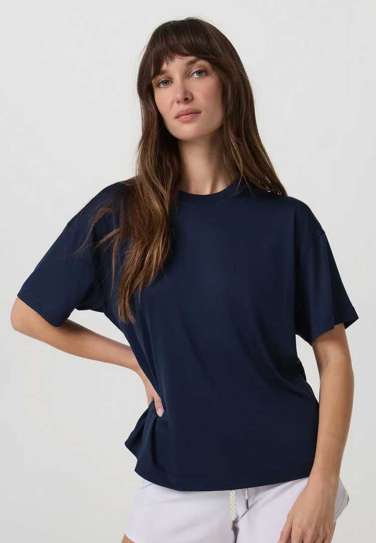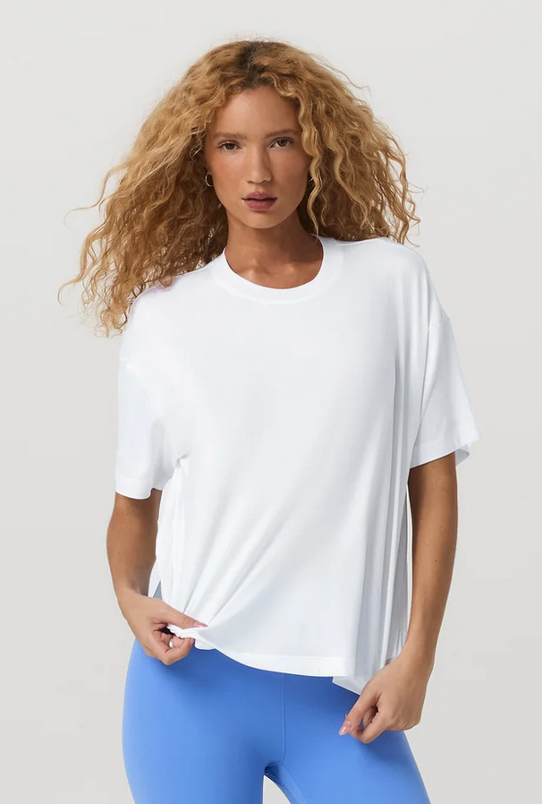Your favorite tee, now in a longer length. Our women's Energy Long Tee is made in luxuriously soft performance stretch jersey with the perfect slouchy fit, making this fitness top an instant wear-on-repeat wardrobe addition. Extra coverage offers even more ways to wear and pair with leggings, joggers, or shorts.