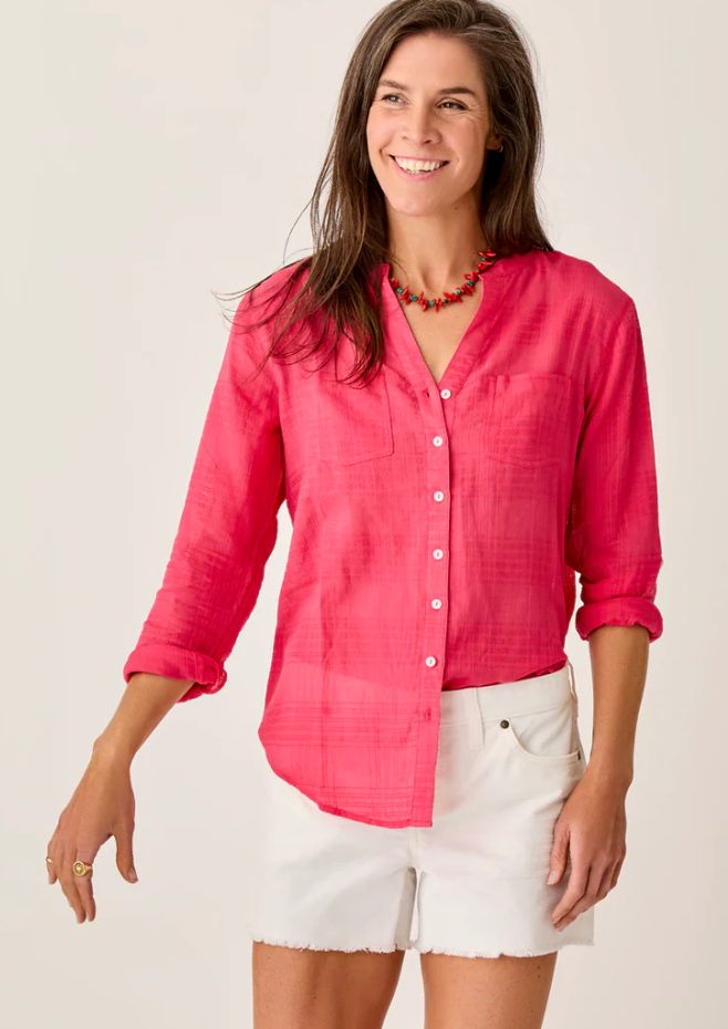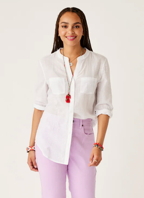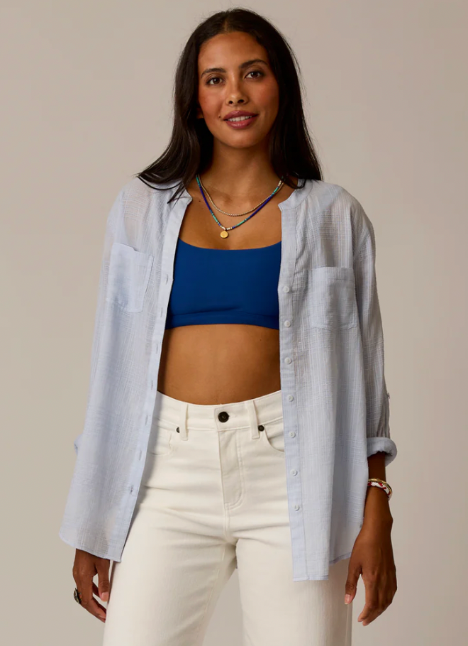 The beach-inspired Dylan Textured Tunic is one of the most versatile pieces that your closet is begging you for. Chest pockets, a button front, and the textured gauze fabric make it flow from the beach to your around-the-town attire. Layer this top up.